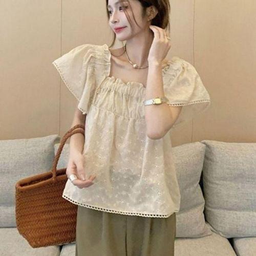 [에이치플러스몰]자수레이스 인기 퍼프소매 여성 여자 감성 펀칭블라우