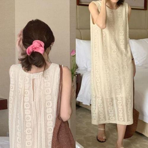 [에이치플러스몰]레이스 민소매 추천 펀칭 원피스 꾸안꾸 레이스 코디