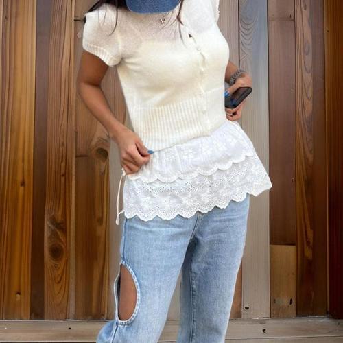[신상오픈런]여성 사랑스러운 펀칭 프릴 층치마 밴드 화이트 스커트 (32455305)