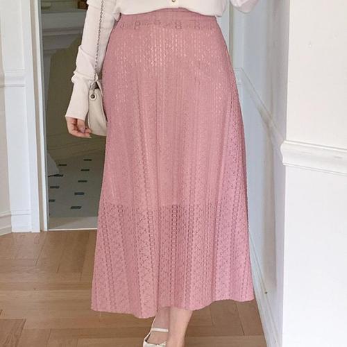 메이첼 빅사이즈 레이스 펀칭 밴딩 롱 청순 스커트 10221