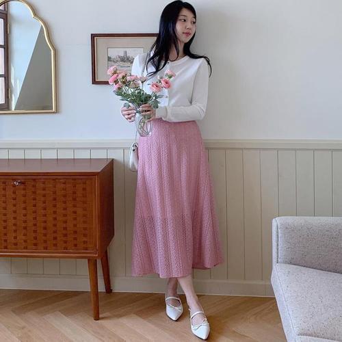 [셀럽하우스]F006613_(밴딩) IEAR9342 레이스니트 롱스커트 펀칭니트치마