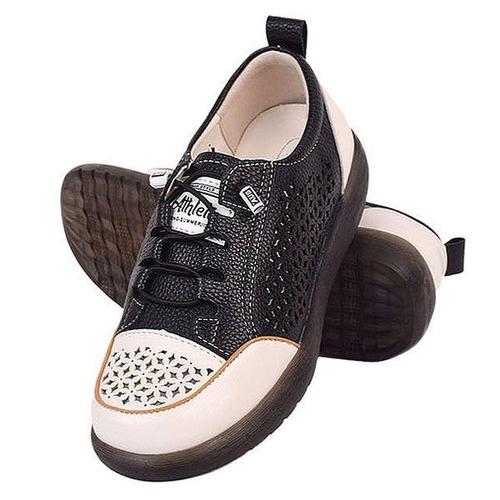 여성용 배색 펀칭 가죽 캐주얼 스니커즈 운동화
