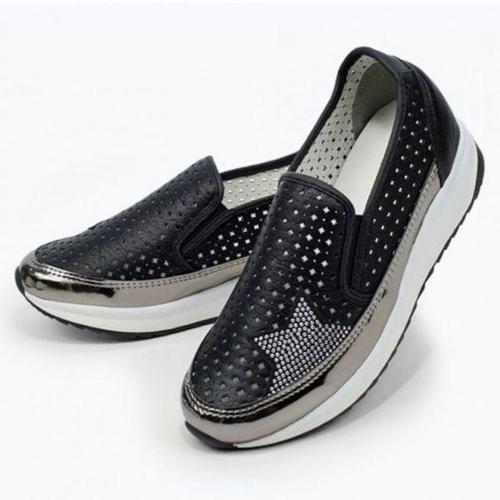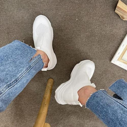 [신상오픈런]여성 키높이 슬립온 운동화 웨지힐 펀칭 디자인 봄 여름용
