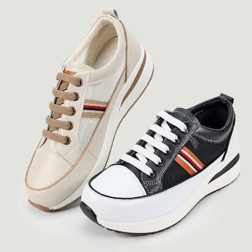 [에이치플러스몰]여성 키높이 메쉬창 가죽 밴딩끈 캐주얼 펀칭운동화