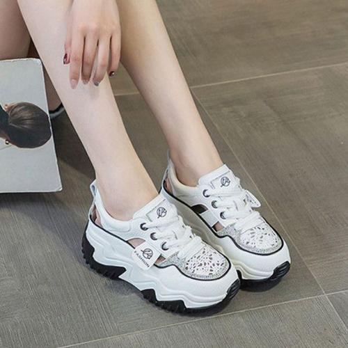 여성 두꺼운굽 SS 운동화 오픈토 펀칭 단화