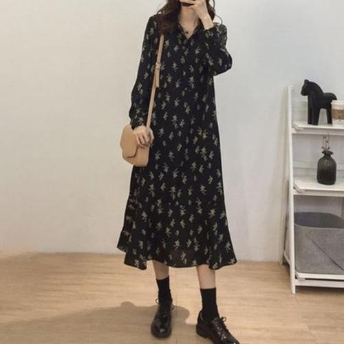 [다잇템]여자 플라워패턴 잔잔 페미닌 롱 시폰 원피스