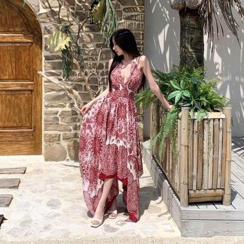 [신상오픈런]|OHO55DA|여성 바캉스 페이즐리 언발란스 트임 나시 롱 드레스_21887472_597559