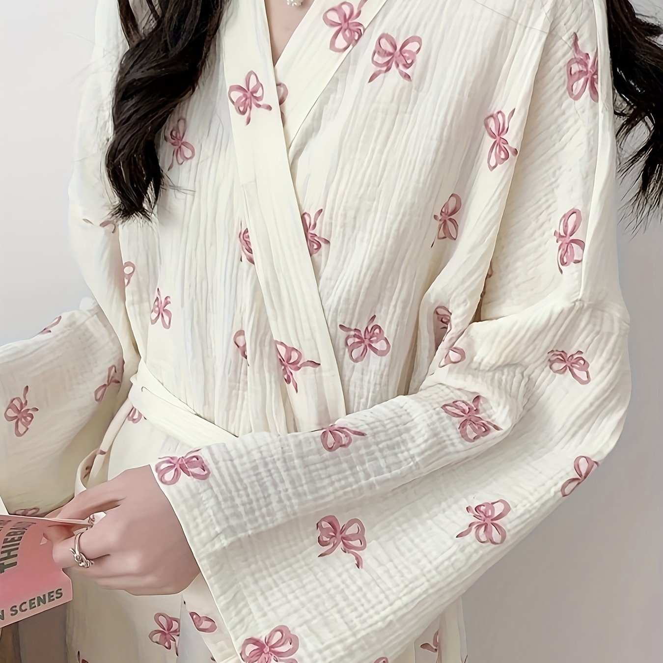 TEMU 신상 한국 스타일 심플 핑크 리본 캐주얼 루즈핏 여성용 나이트가운, 봄/가을 홈웨어 슬립드레스