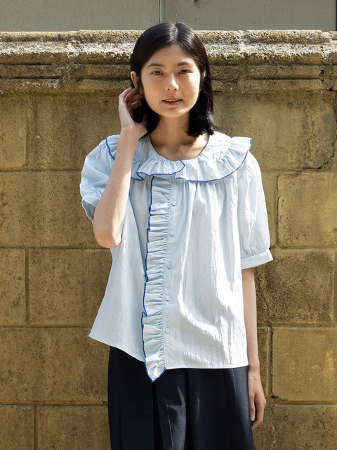 [빈센트네이비] 산토리니 프릴 블라우스_블루