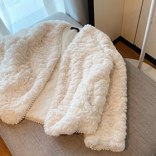 슈팅스타 / 페이크퍼 토끼 모피 진주장식 도톰 자켓 K799475