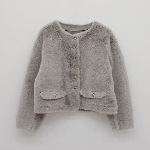 골드버튼 라운드넥 페이크퍼 자켓 AP4FJA61