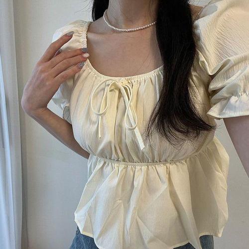 [다잇템][다잇템] 여성 후레아 잔주름 리본 반소매 블라우스 페플럼 데이웨어_22451952_588872