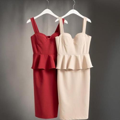 [신상오픈런]여성 슬림핏 프릴 나시 페플럼 미디 드레스 (41992452)