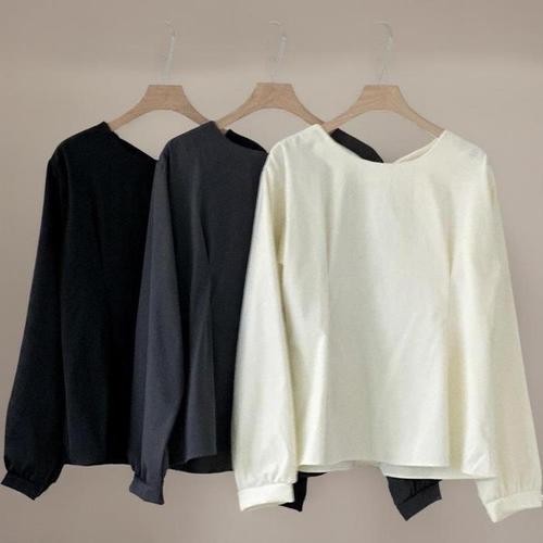 [신상오픈런]여성 다트 페플럼 라운드넥 리본 뒷면 하객용 블라우스 (41564232)