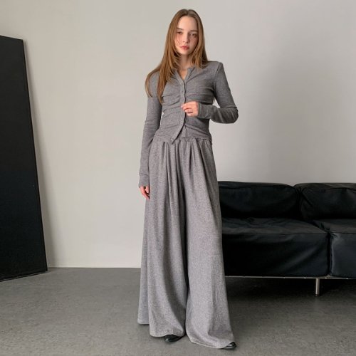 [바스카라][세트] 셔링 버튼 가디건+와이드 팬츠 셋업 투피스 (3colors)