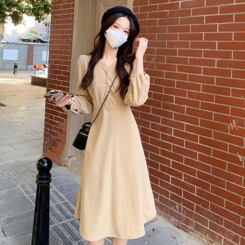 [에이치플러스몰]브이넥 날씬해보이는 하객룩 데이트룩 코듀로이 원피스