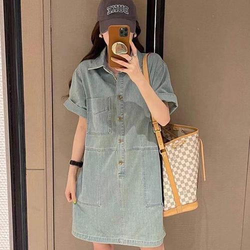 [에이치플러스몰]포켓 인기 데님 남방 셔츠 감성 원피스 체형커버 스타