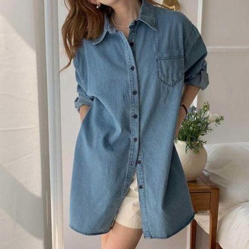 SAHINER 봄가을 여성 데님 셔츠 롱원피스 오버핏 캐주얼 데일리룩 LWBQZ34