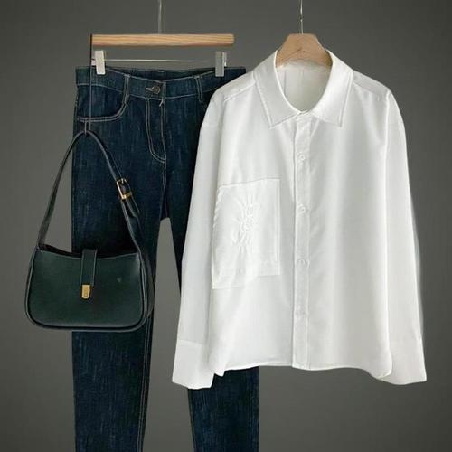 [신상오픈런]여성 자수 루즈핏 긴팔 셔츠 빅포켓 면혼합 (39388062)