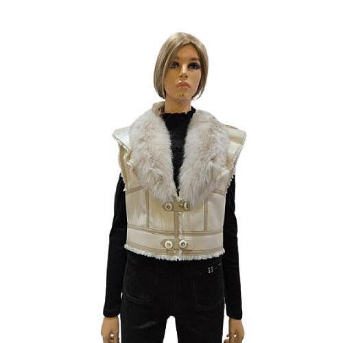 여성용 폭스 퍼 무스탕 라이더 자켓 KSJK240808