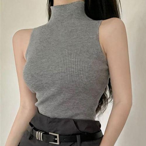 [에이치플러스몰]민소매 골지니트티 슬림 폴라