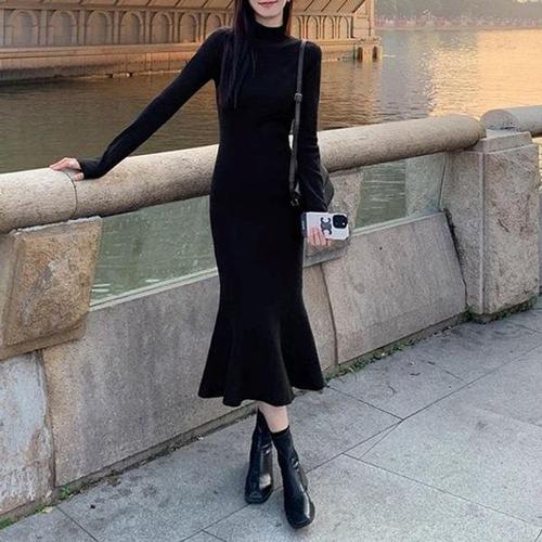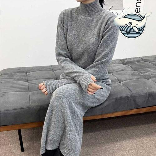 [에이치플러스몰]데일리 여성 니트 원피스 목폴라 세트 롱 원피스 니트 겨울 여성 원피스 가을 니트 롱