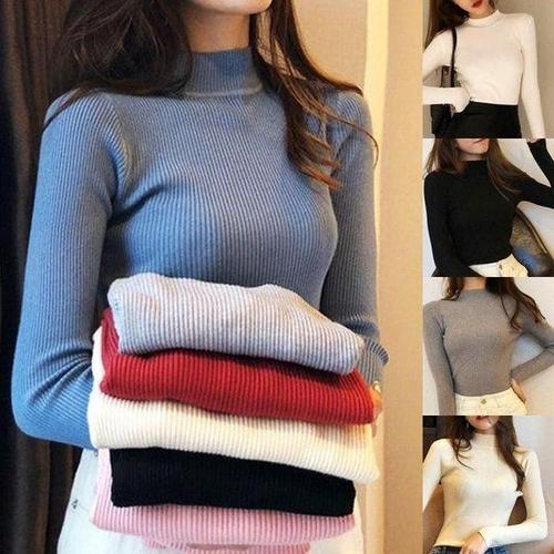폴라 하프넥 반목 여자 부드러운 니트 원피스 WFLQ84D