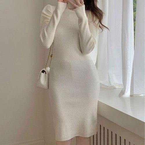 [모노무드]모노무드 여성 터틀넥 니트 원피스 롱 벌룬소매 하객룩 긴팔