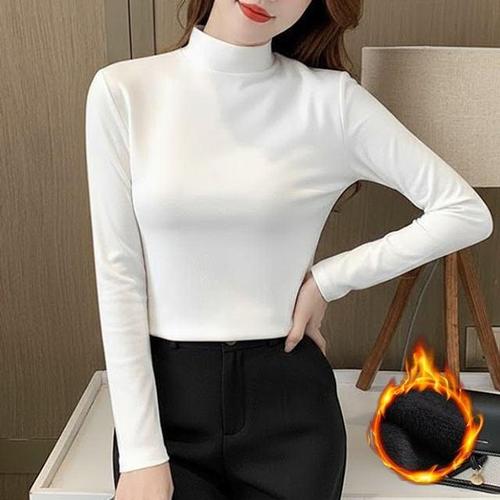오스틱니 (완전 편안) 2025 여성용 초특가 가을 겨울용 반폴라 날씬해 보이는 우아한 데일리 단색 보온 긴팔 이너 니트 티셔츠 외출 간절기