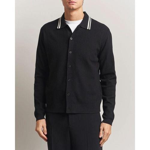 도비조직 스트라이프 반팔 폴로 가디건 블랙 (HSTS6B301BK)