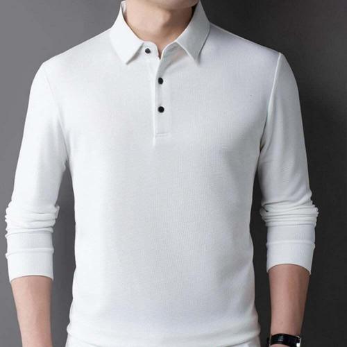 와플 남성 긴 소매 티셔츠 봄 옷깃 비즈니스 캐주얼 폴로 셔츠 탄성베이스 셔츠 탑 새로운