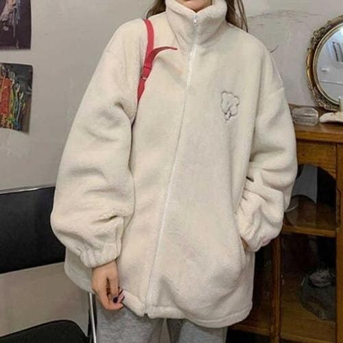 [엄지척]쭈리소매 곰돌이 포인트 폴리스 자켓 아이보리_20342463_667501
