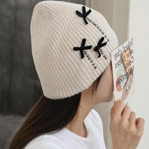 [신상오픈런]여성용 귀여운 폼폼 털방울 배색 하트 울 니트 비니 (42240490)