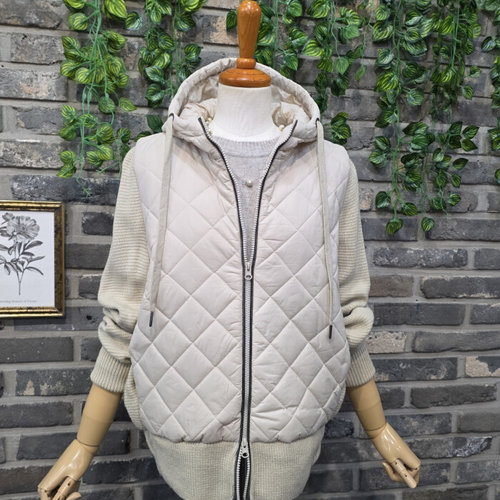 퐁당 / 다이아 누빔 믹스 후드 니트 집업 점퍼