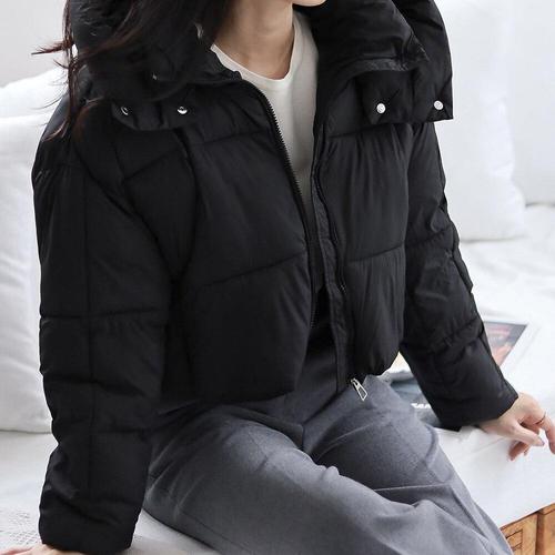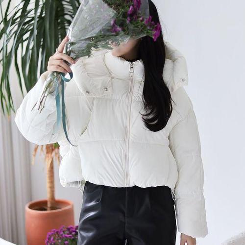[옷자락] 여자 크롭 숏패딩 솜 하이넥 후드 스트링 푸퍼 점퍼