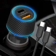프라임큐 48W PD 3.0 초고속 LED 2포트 차량용충전기 + C to C 고속 케이블 세트, PR-PDCG100, 블랙