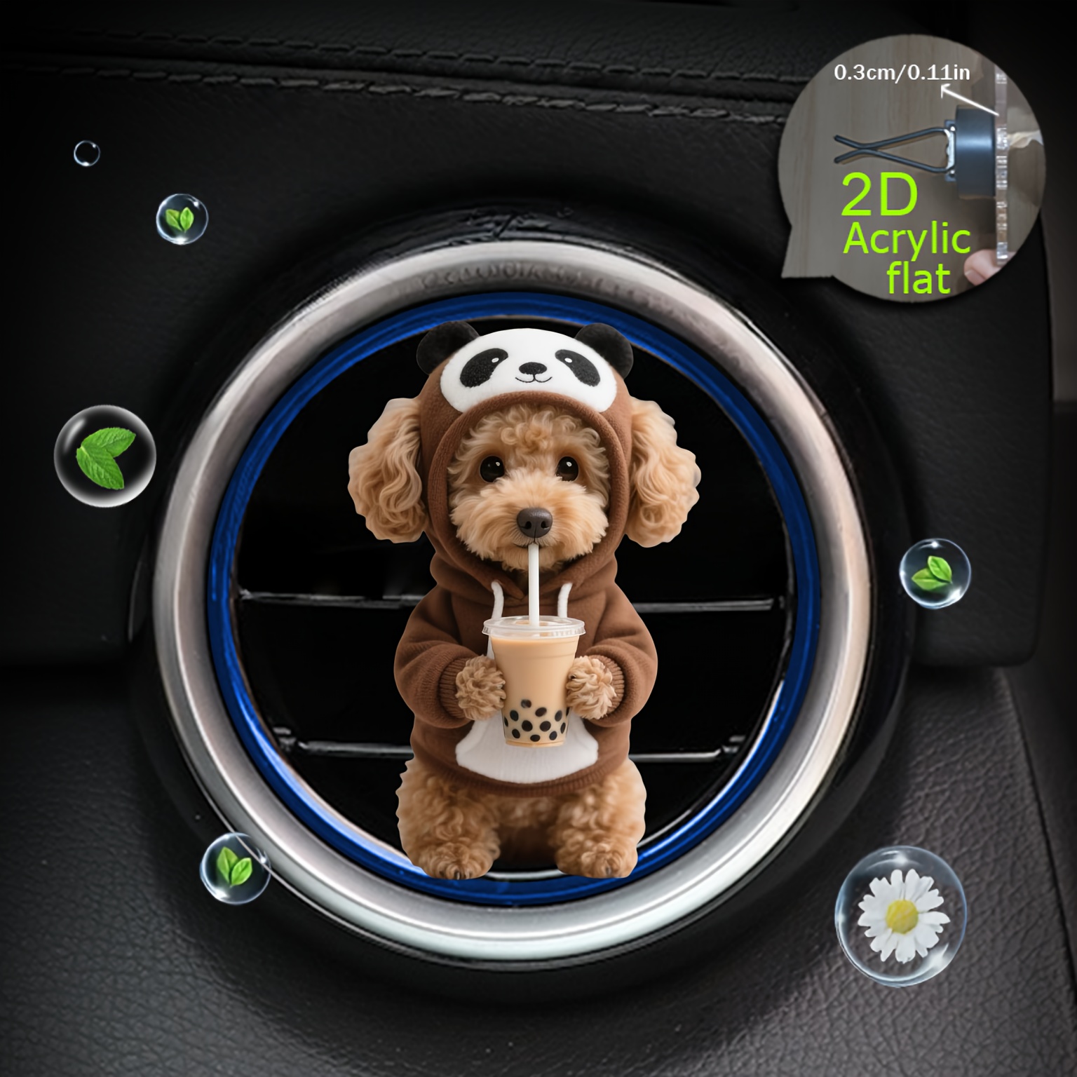 TEMU 2D 평면, 1개 밀크티 차량용 에어 벤트 클립 - 귀여운 개 테마 장식 액세서리, 무향, 스타일리시한 자동차 인테리어 장식, 완벽한 선물, 여성용 차량 액세서리, 차량 내부 액세서리, 차량용 공기 청정제, 오래 지속되는 차량용 공기 청정제|차량용방향제