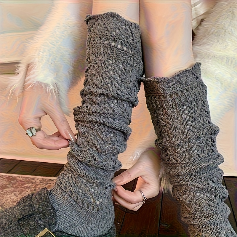 TEMU 1쌍 여성용 한국식 겨울용 따뜻한 홀로우 레그 양말 - 두꺼운 레이어링 미드 캐프 스태킹 양말, 부드럽고 따뜻한 소재로 추운 날씨, 캐주얼 의상 및 한국 패션에 적합