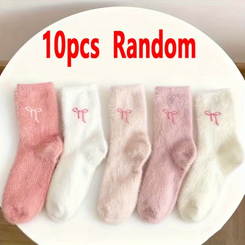 TEMU 14/10/6개 7/5/3켤레 랜덤 소프트 귀여운 여성용 겨울 리본 플러시 양말, 사랑스러운 달콤한 중목 두꺼운 보온 수면 양말