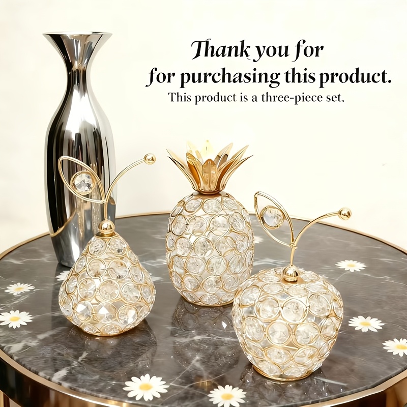 TEMU 3개 세트 골든 및 메탈 장식품 - 우아한 사과, 배, 파인애플 테이블 , 반짝이는 , 클래식 스타일 공예, 홈 , 휴일 선물, 파티용 고급스러운 데스크탑 액세서리