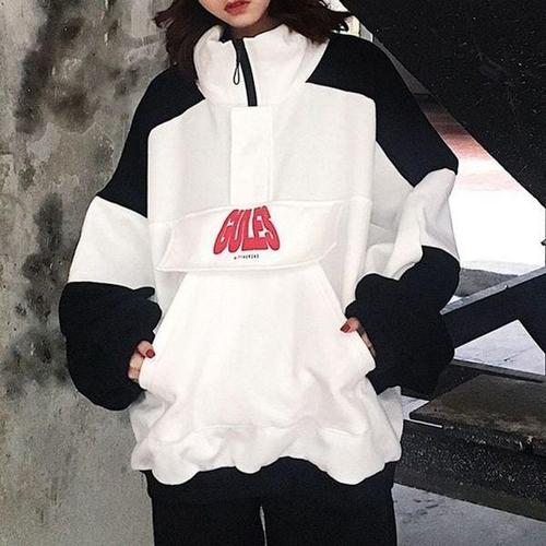 [에이치플러스몰]젠더리스 듀얼컬러 기모안감 하프넥 프린트 스타일스?셔츠 INSUM45