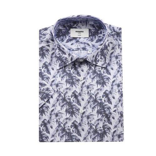 갤러리아_(반소매 일반핏) 고급스러운 잉크 페인팅 리프 프린트 반팔 셔