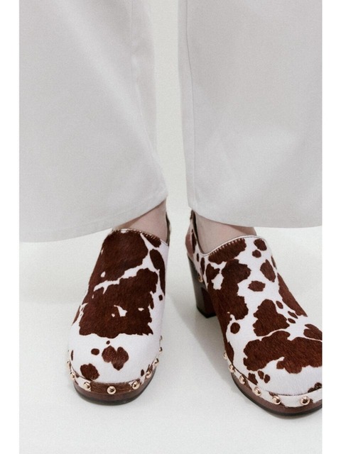 [에이치엔엠] 힐드 레더 클로그 브라운/소가죽 프린트 1329154001