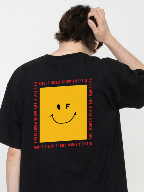[그레이버] 사각스마일 라이프폰트 백프린팅 반팔티_블랙