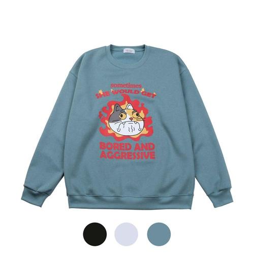 갤러리아_[모로엠] 남녀공용 임팩트 있는 프린팅 기모 맨투맨 ST-TSK-ANGRYC