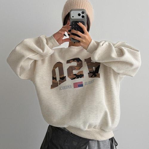 [옷자락] 여자 남자 오버핏 프린팅 라운드 캠퍼스룩 기모 맨투맨