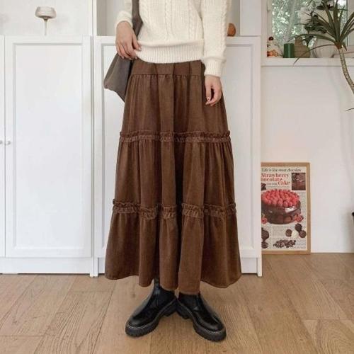 [다잇템][다잇템] 여자 벨루어 핀턱 키치무드 고무줄 프릴 롱 후레아 스커트_23517805_588872
