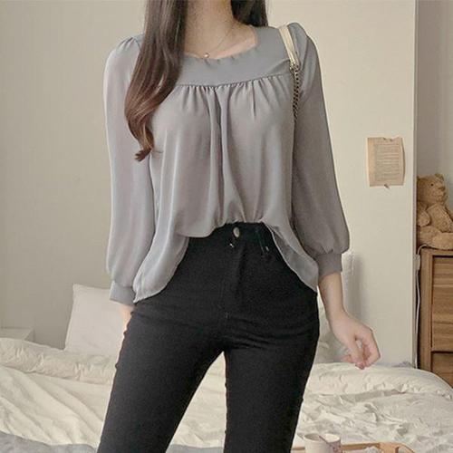 (스타일하우스) 블라우스 셔츠 브라우스 스퀘어넥 노카라 여자 셔링 프릴 상의 긴팔