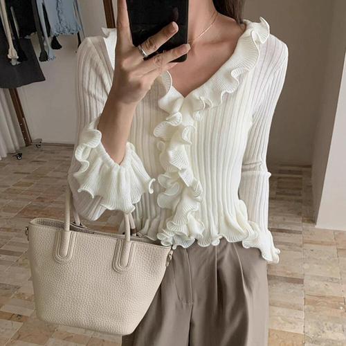 벨린 오즈 프릴 블라우스 카라 긴팔 탑