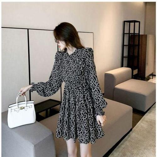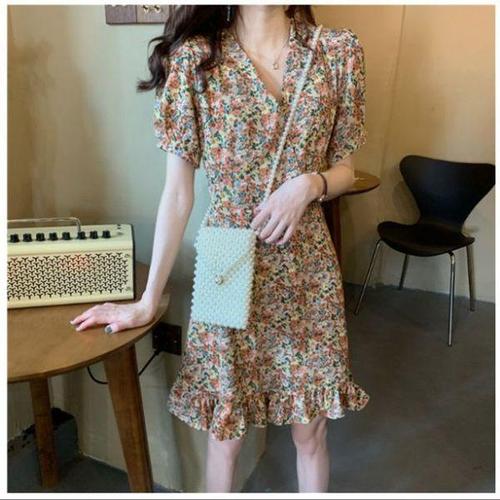 [에이치플러스몰]여성 여름 러플 카라 밴딩 빅플라워 쉬폰 미니 원피스